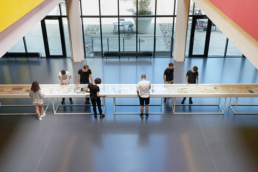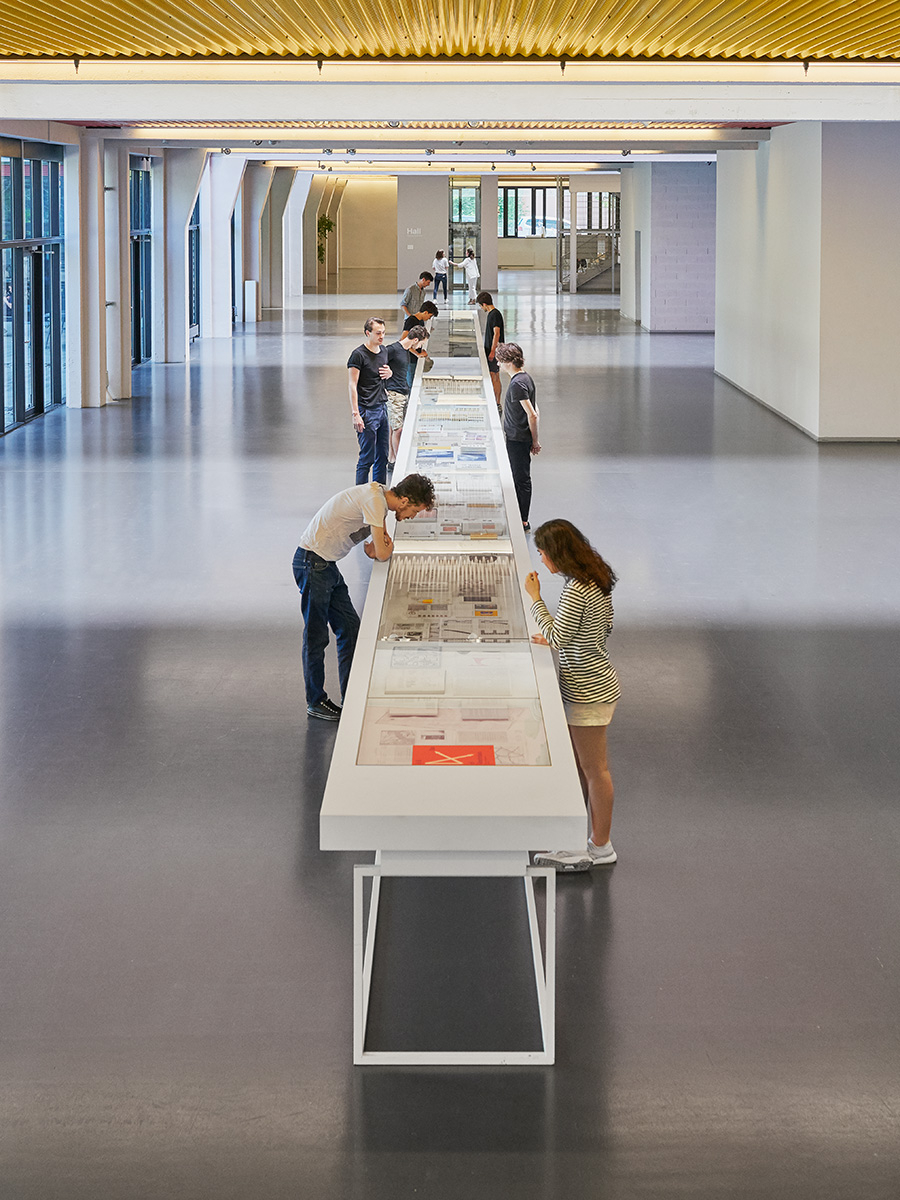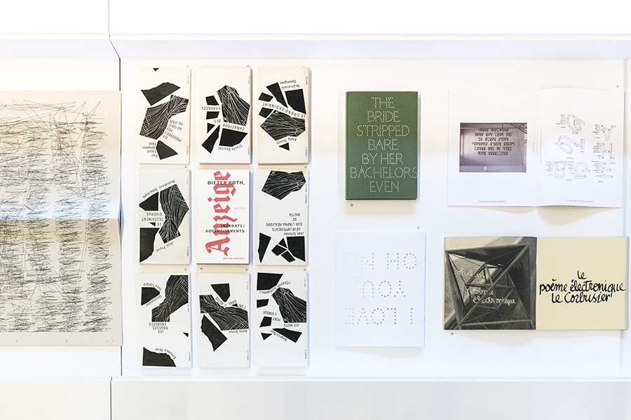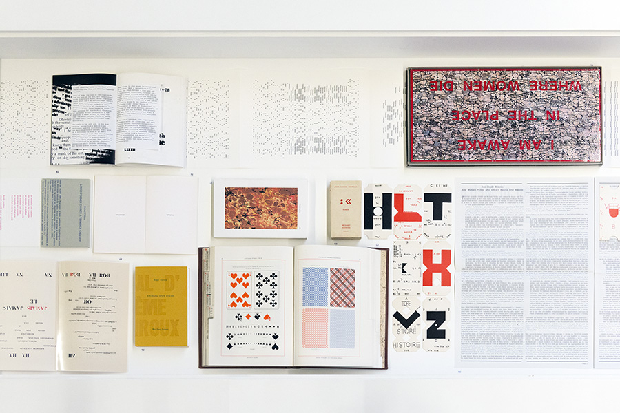 Following the invitation by ECAL/Ecole cantonale d'art de Lausanne and Alexandru Balgiu, Izet Sheshivari curated and set up The Liberated Page bookcase (24m) with the help of Simon Mager presenting 160 books and ephemera from the archive. Exploring the history and the evolution of writing in the field of contemporary art and practise, this exhibition took the form of a stroll, along the entire length of ECAL hall, to view a selection of book from my cabinet displayed in conversation or tête-à-tête.